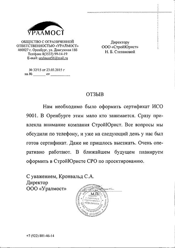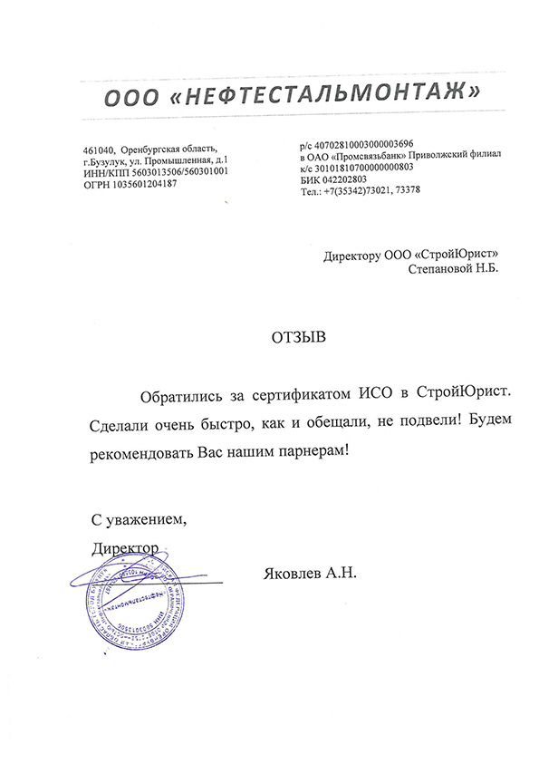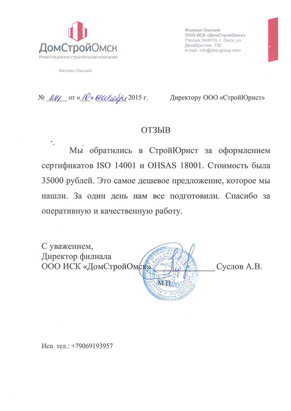 Отзывы клиентов "СтройЮрист" по ISO в Одинцово