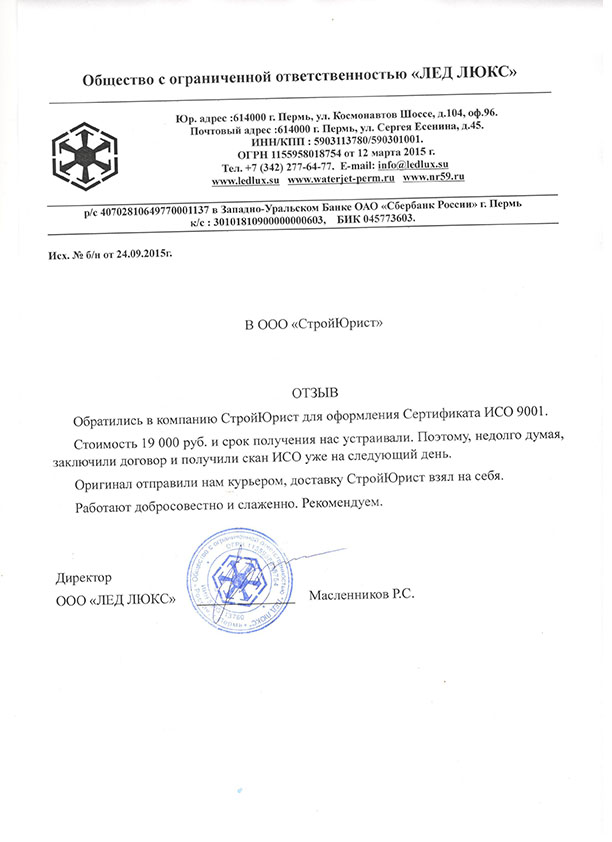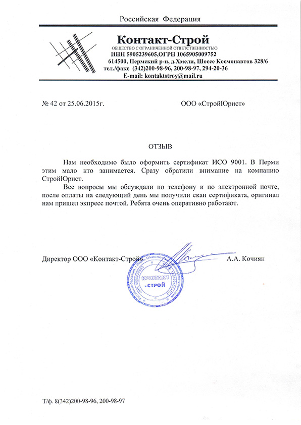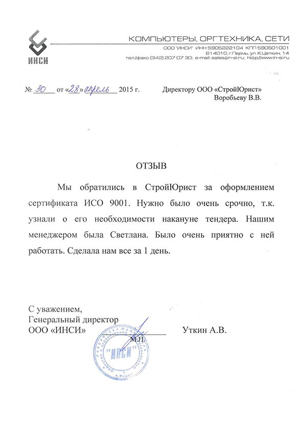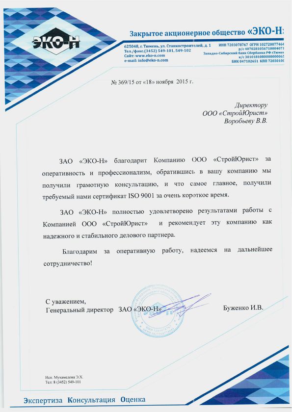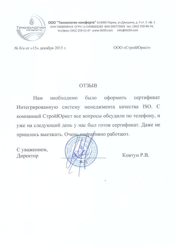 Отзывы клиентов "СтройЮрист" по ISO в Одинцово