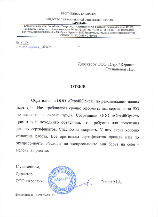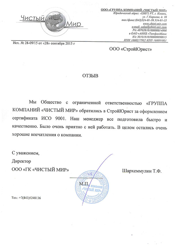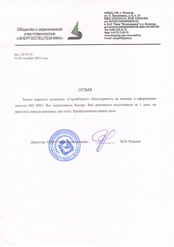 Отзывы клиентов "СтройЮрист" по ISO в Одинцово