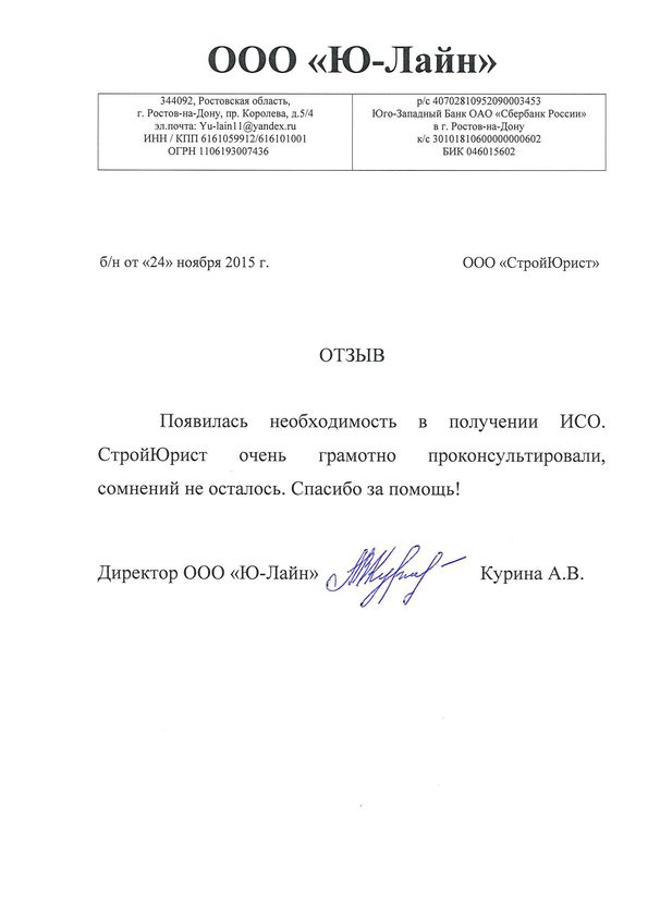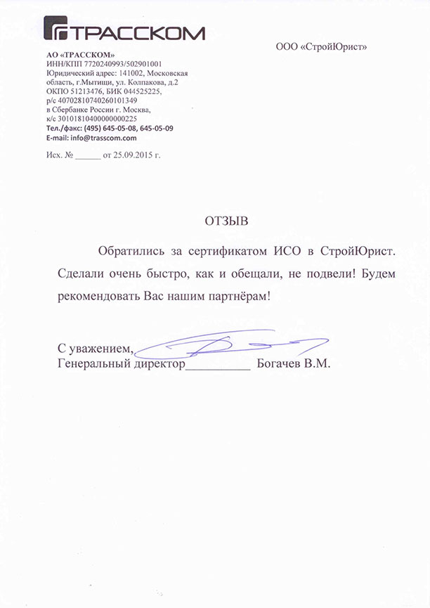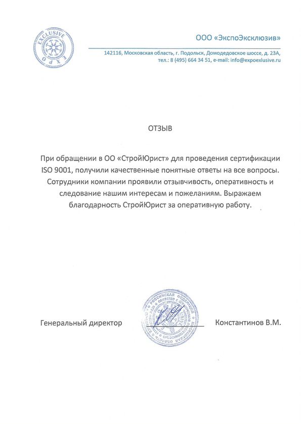 Отзывы клиентов "СтройЮрист" по ISO в Одинцово