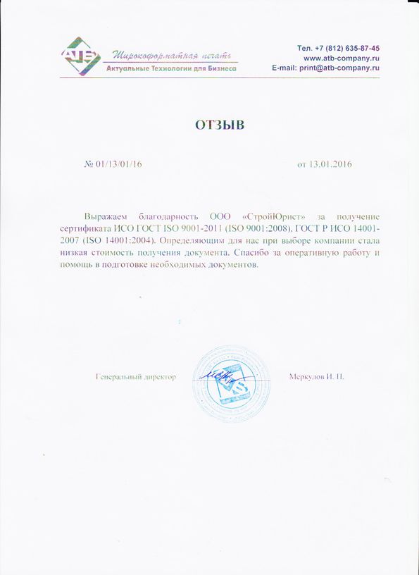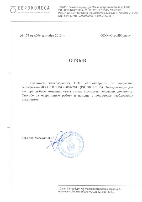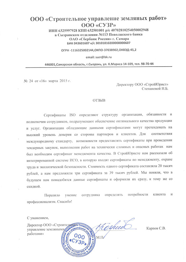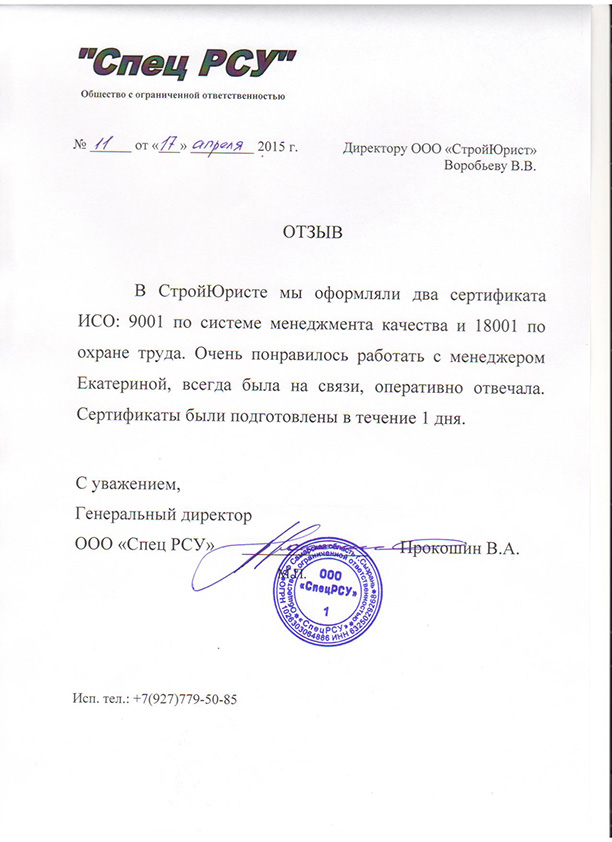 Отзывы клиентов "СтройЮрист" по ISO в Одинцово