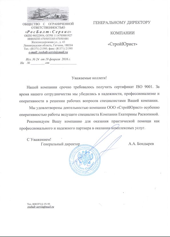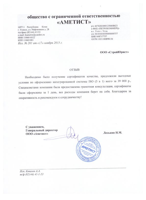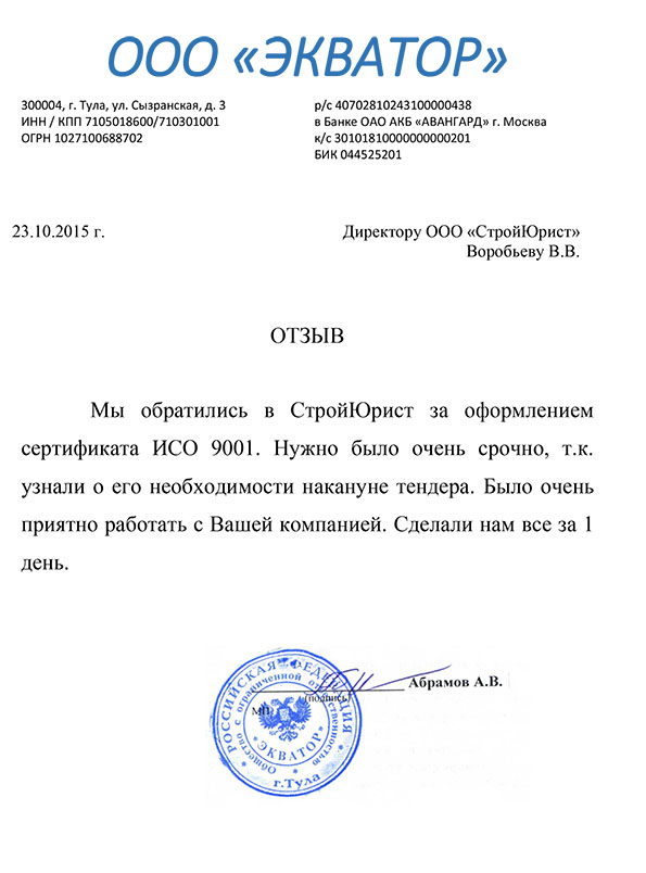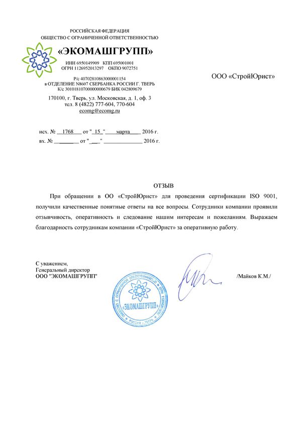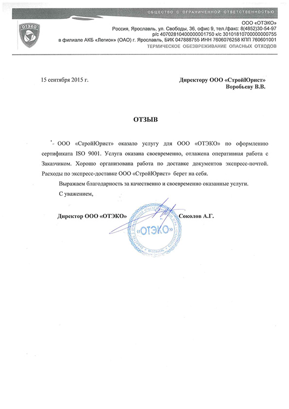 Отзывы клиентов "СтройЮрист" по ISO в Одинцово