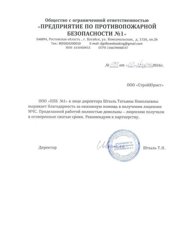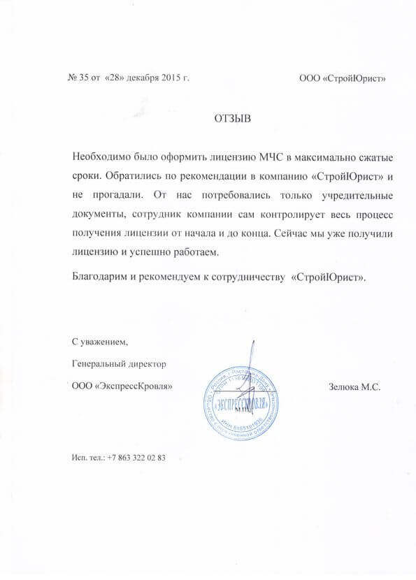 Отзывы клиентов "СтройЮрист" по лицензированию МЧС в Одинцово