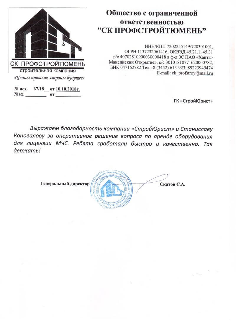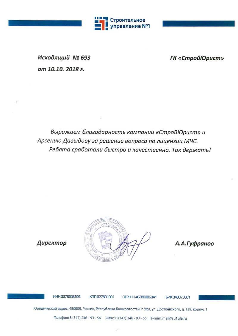 Отзывы клиентов "СтройЮрист" по лицензированию МЧС в Одинцово