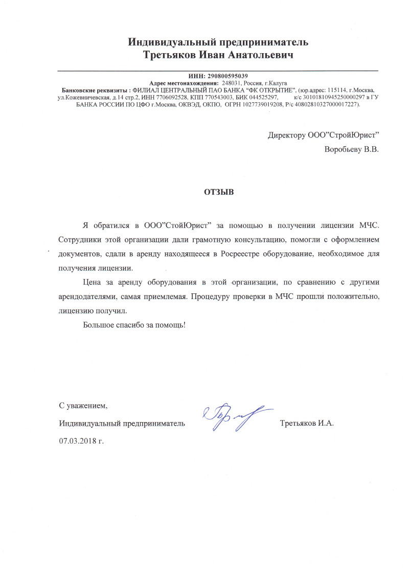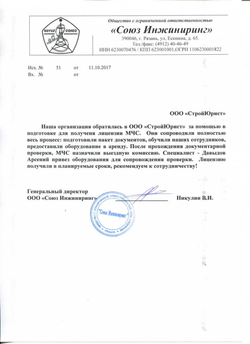 Отзывы клиентов "СтройЮрист" по лицензированию МЧС в Одинцово
