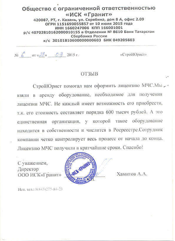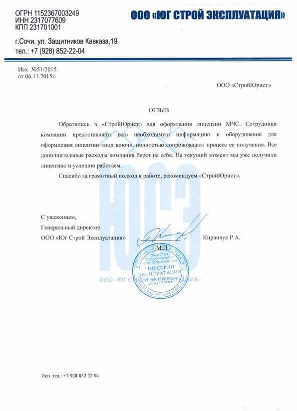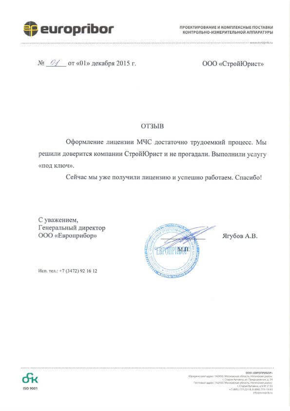 Отзывы клиентов "СтройЮрист" по лицензированию МЧС в Одинцово