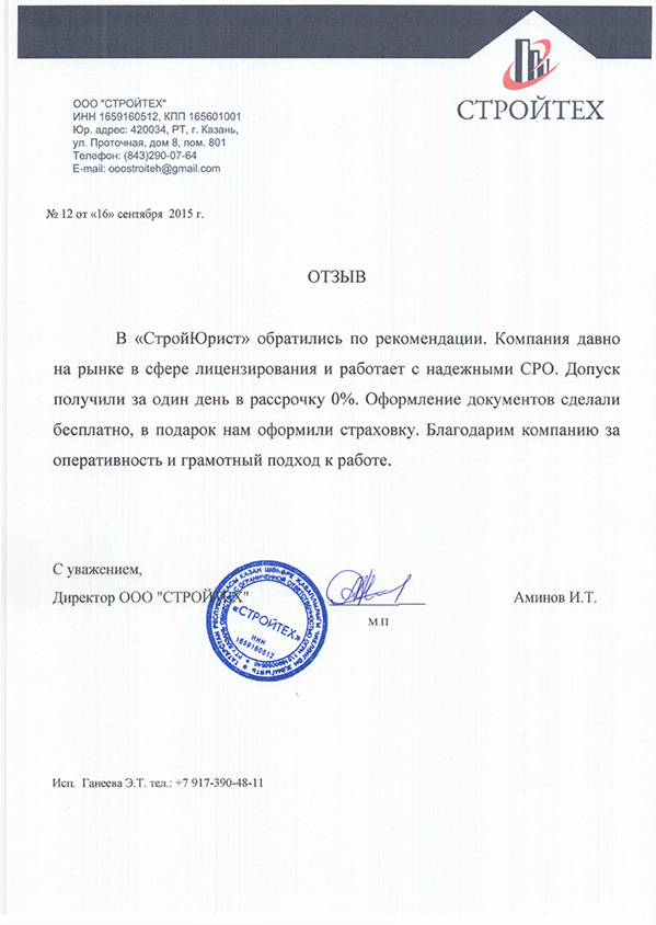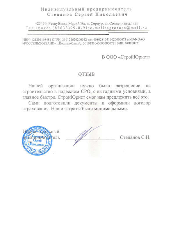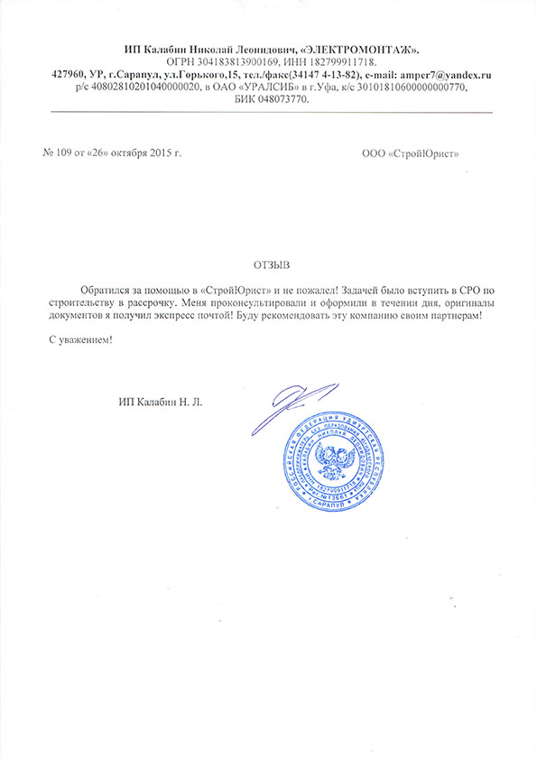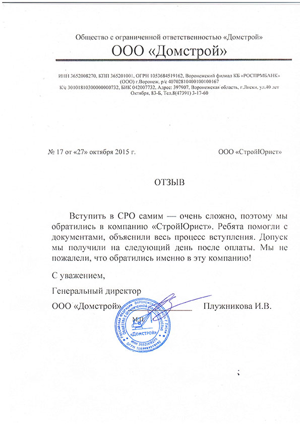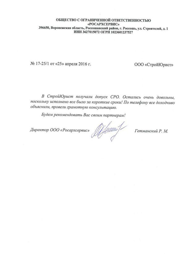 Отзывы клиентов "СтройЮрист" по вступлению в СРО в Одинцово