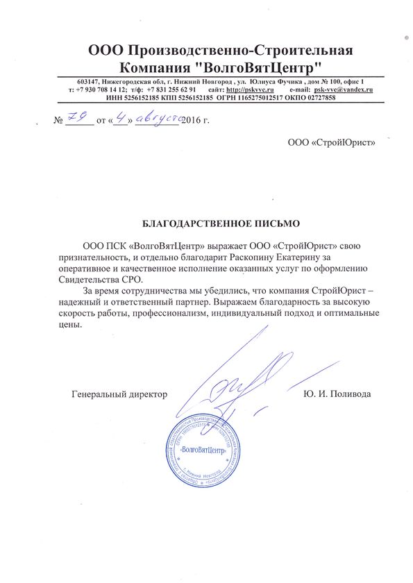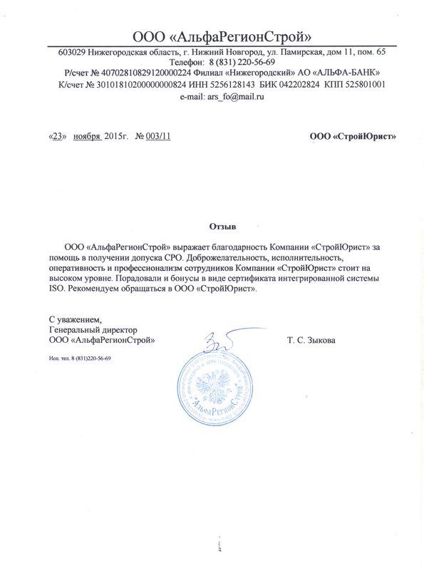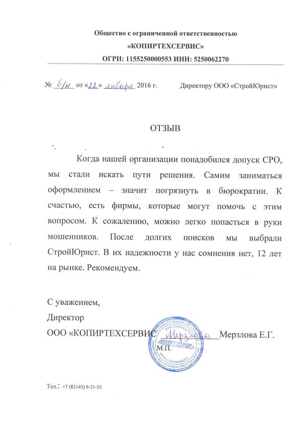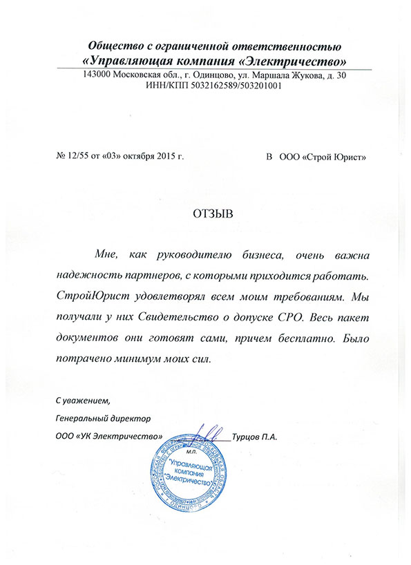 Отзывы клиентов "СтройЮрист" по вступлению в СРО в Одинцово