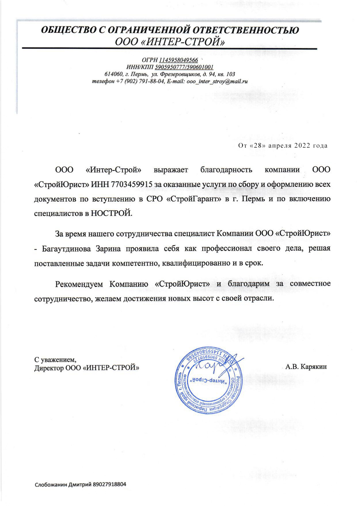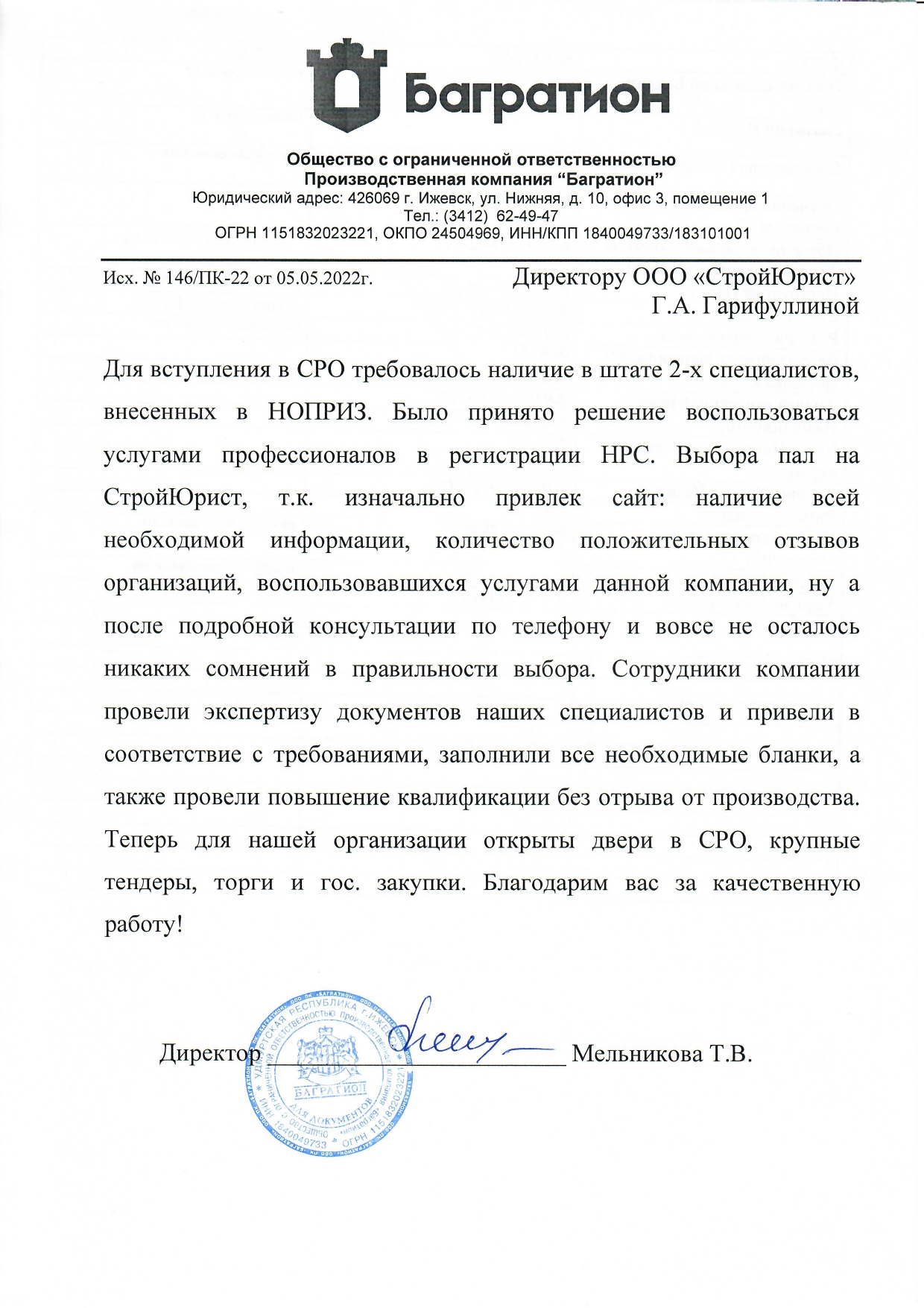 Отзывы клиентов "СтройЮрист" по вступлению в СРО в Одинцово