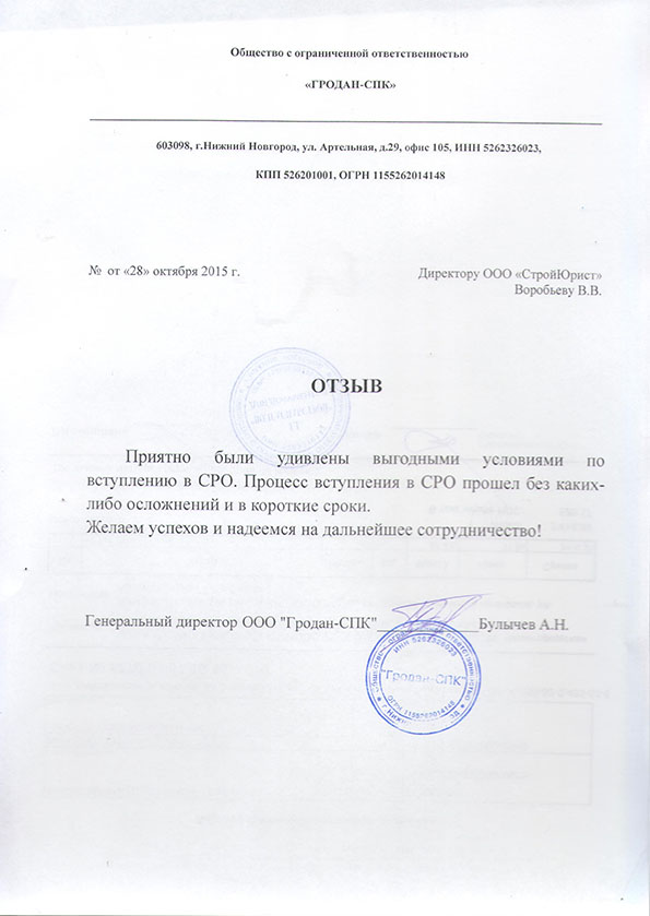 Отзывы клиентов "СтройЮрист" по вступлению в СРО в Одинцово