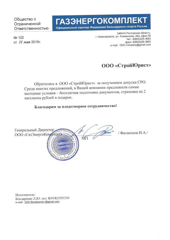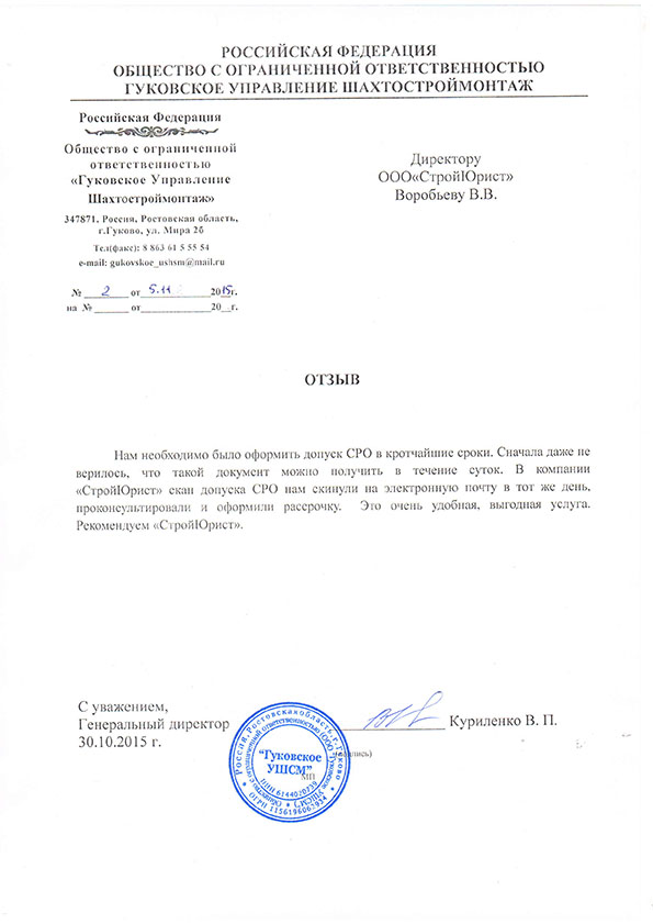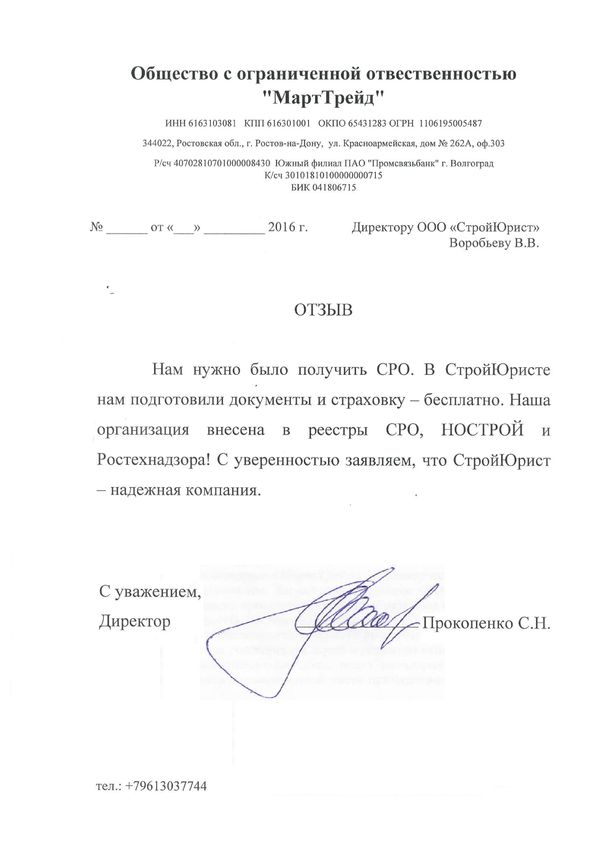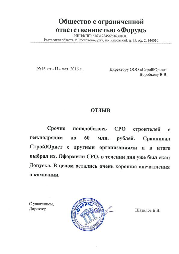 Отзывы клиентов "СтройЮрист" по вступлению в СРО в Одинцово