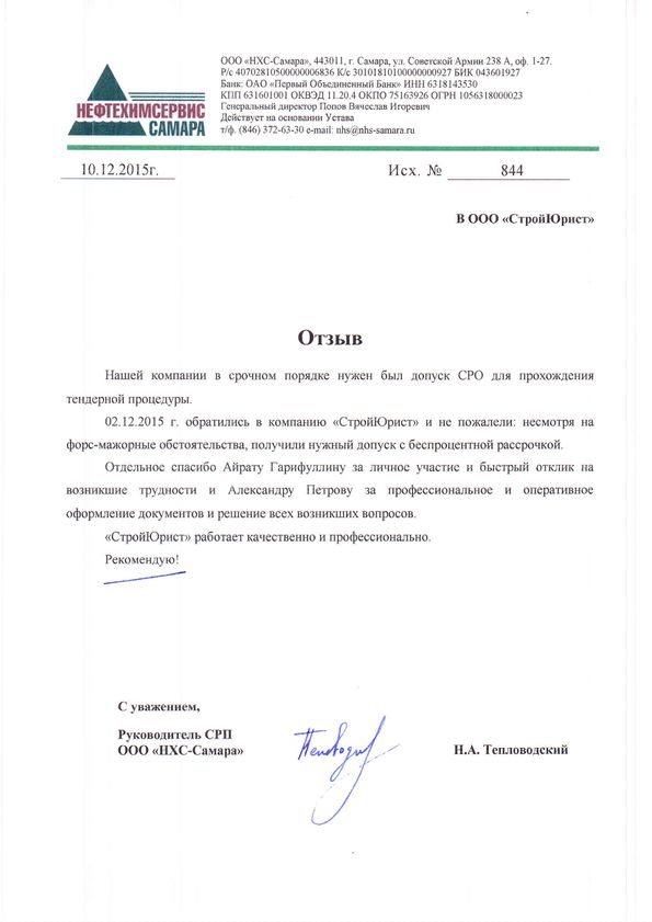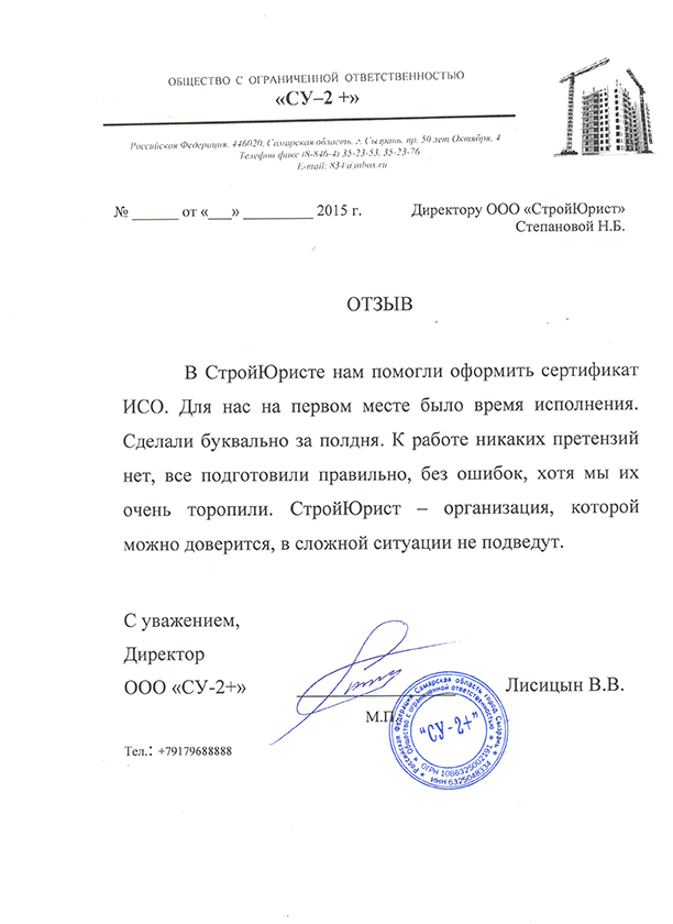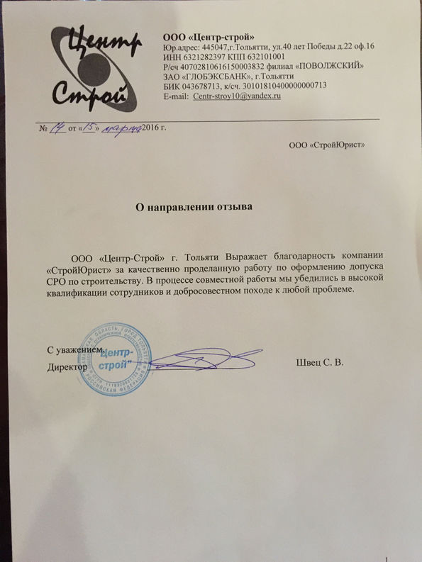 Отзывы клиентов "СтройЮрист" по вступлению в СРО в Одинцово