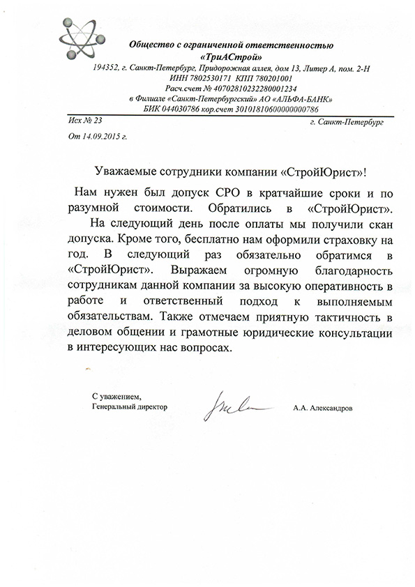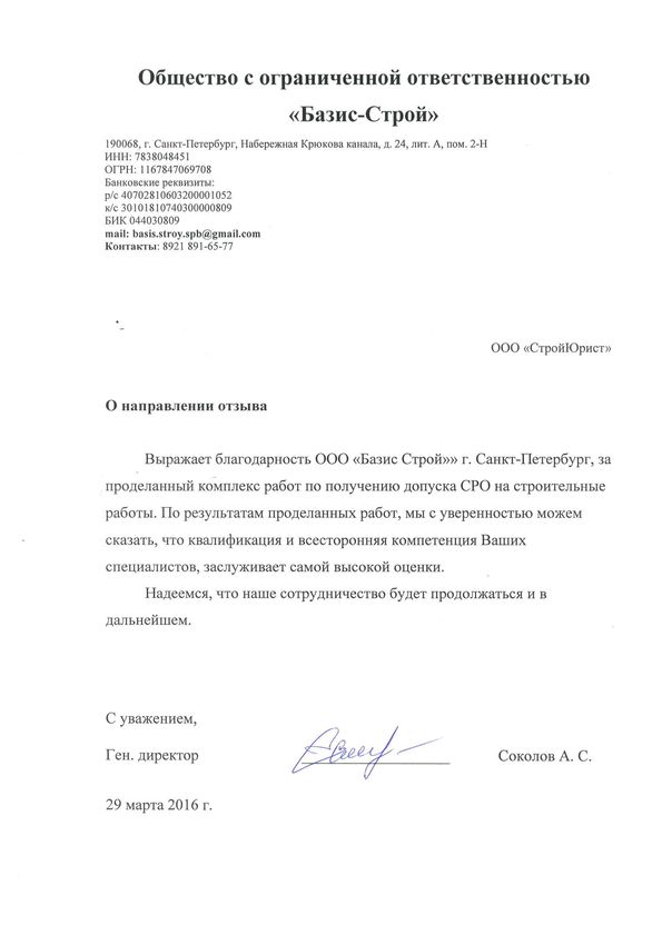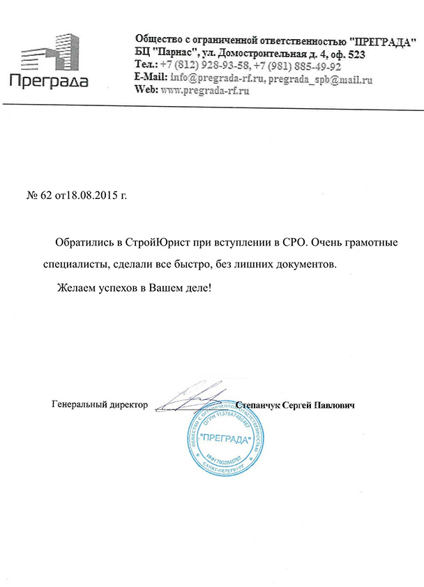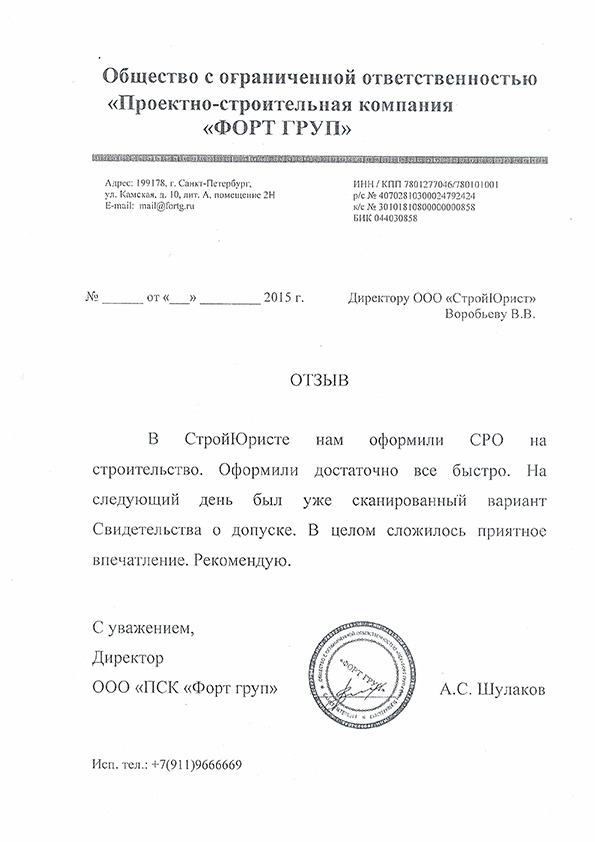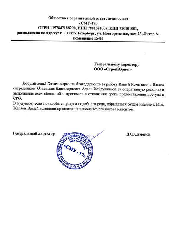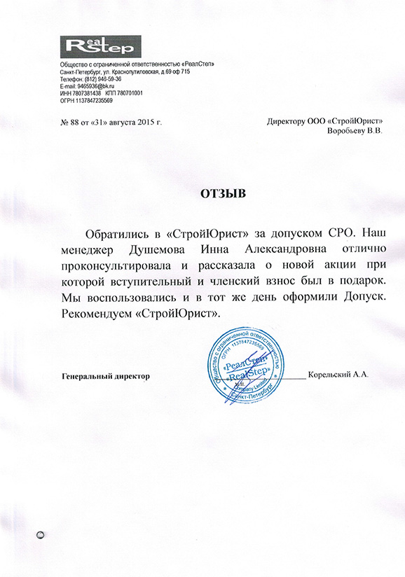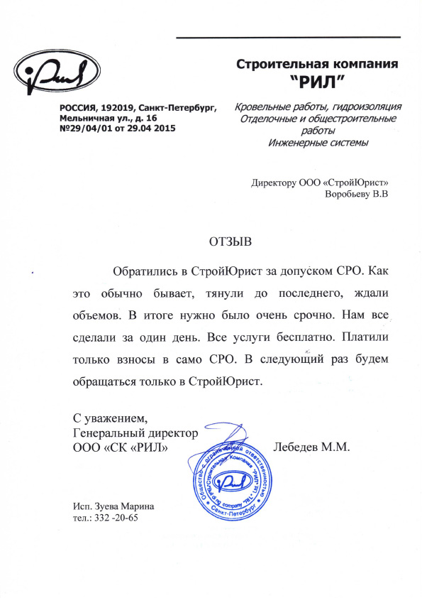 Отзывы клиентов "СтройЮрист" по вступлению в СРО в Одинцово