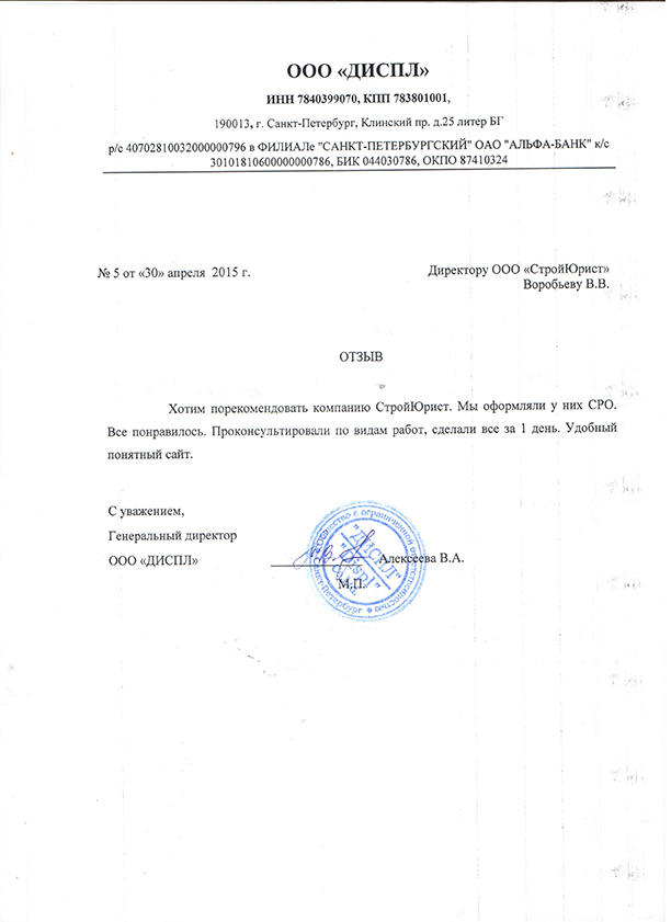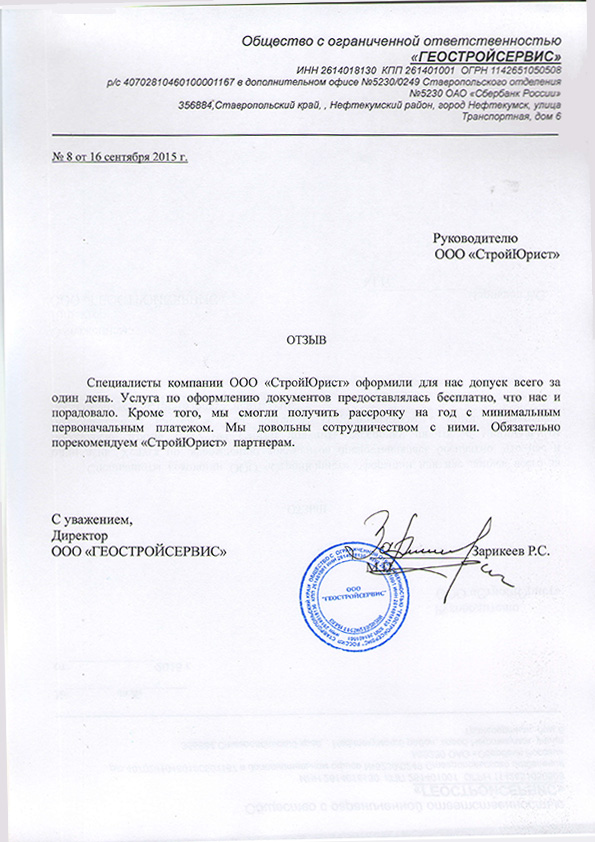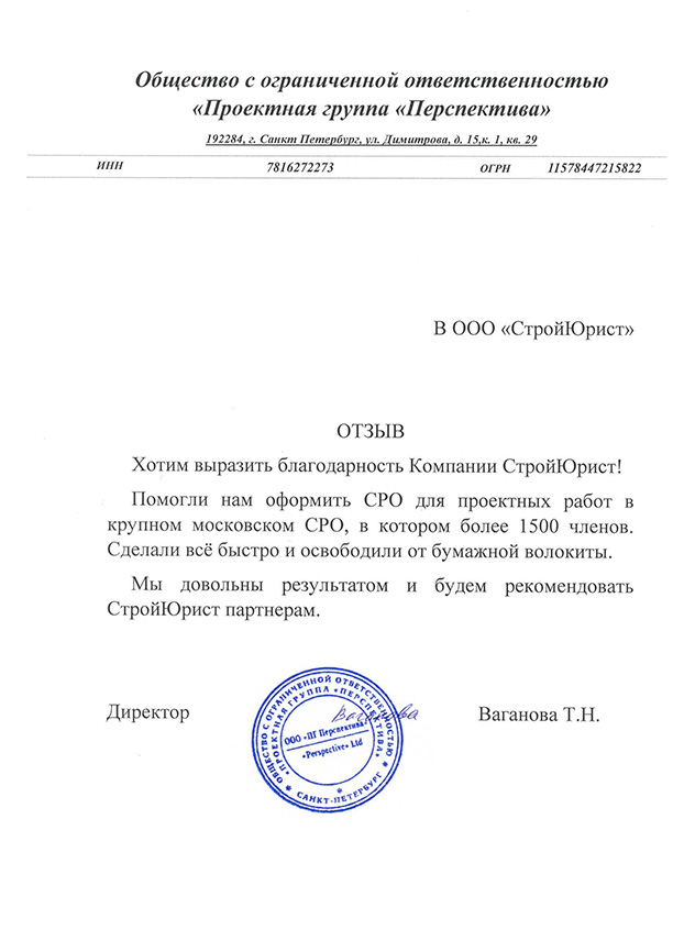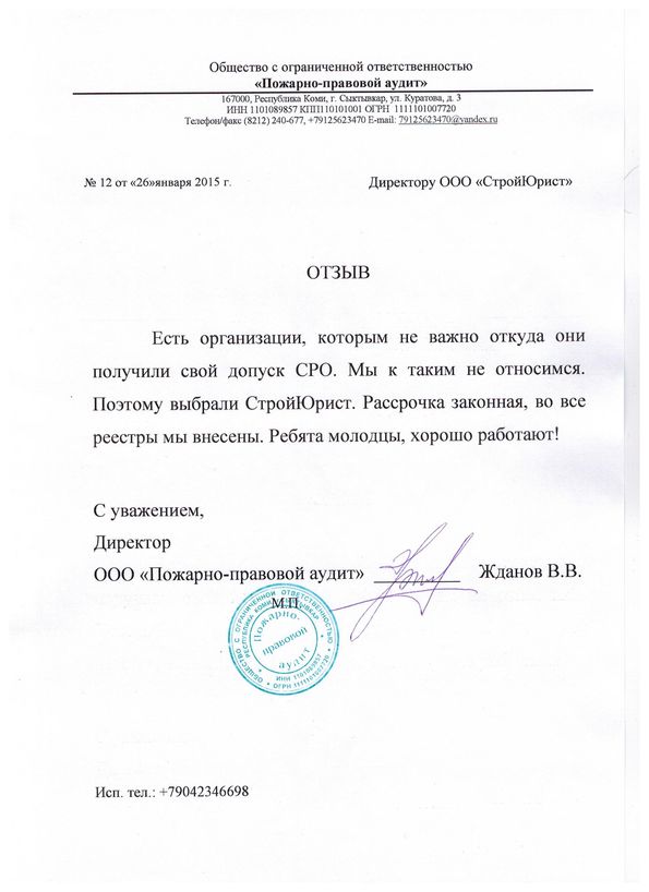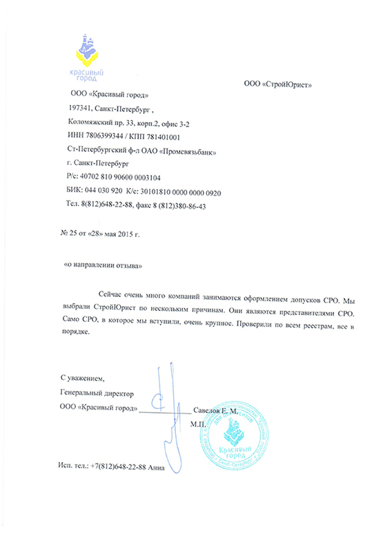 Отзывы клиентов "СтройЮрист" по вступлению в СРО в Одинцово