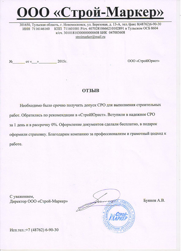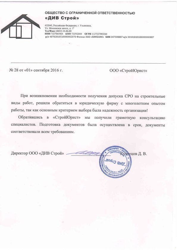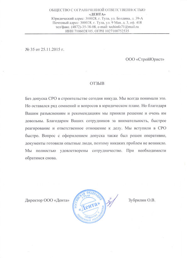 Отзывы клиентов "СтройЮрист" по вступлению в СРО в Одинцово