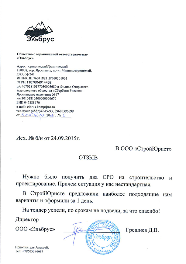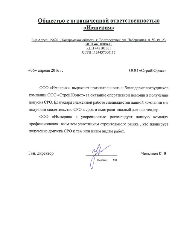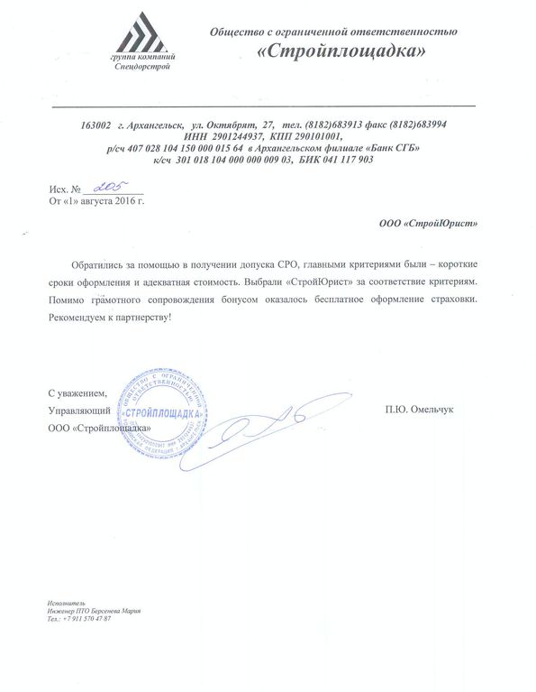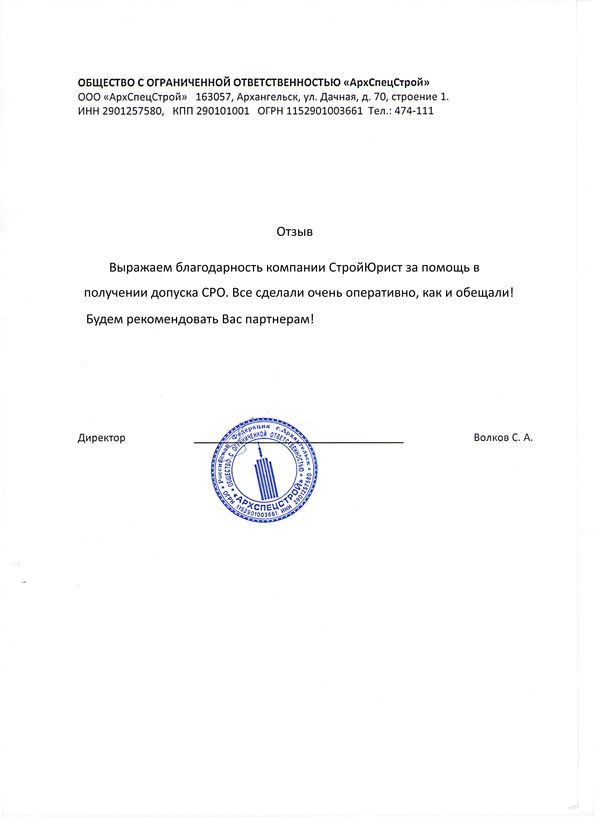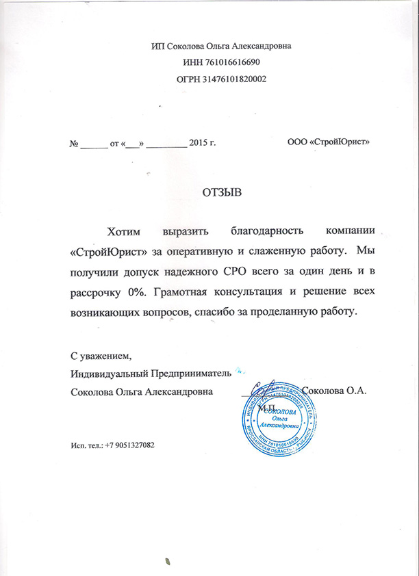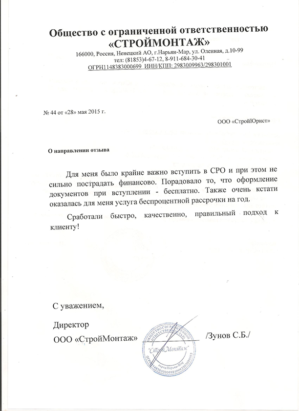 Отзывы клиентов "СтройЮрист" по вступлению в СРО в Одинцово
