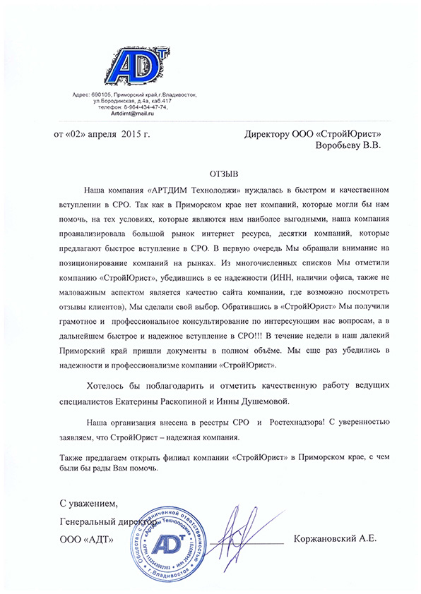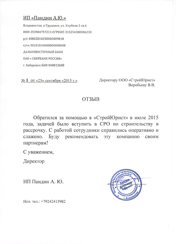 Отзывы клиентов "СтройЮрист" по вступлению в СРО в Одинцово