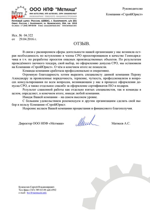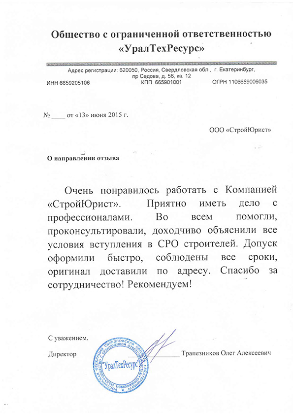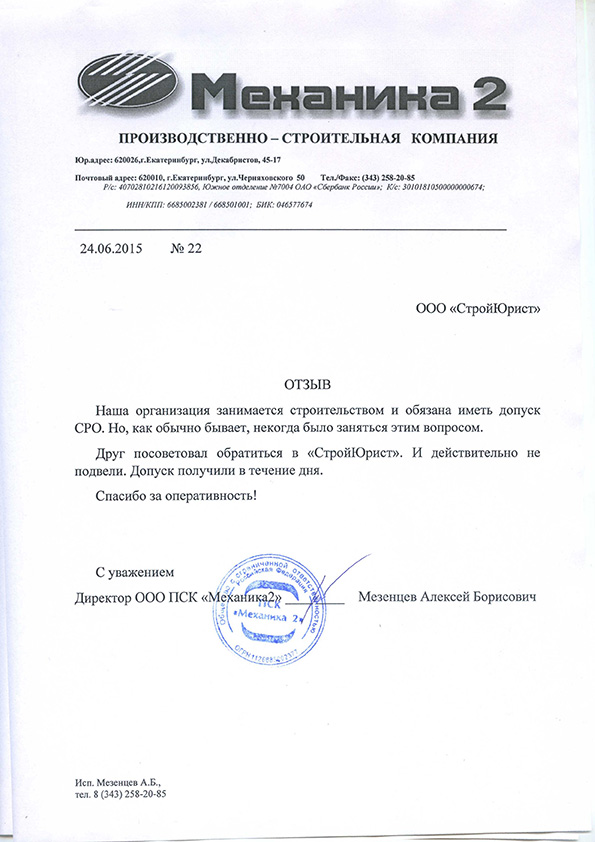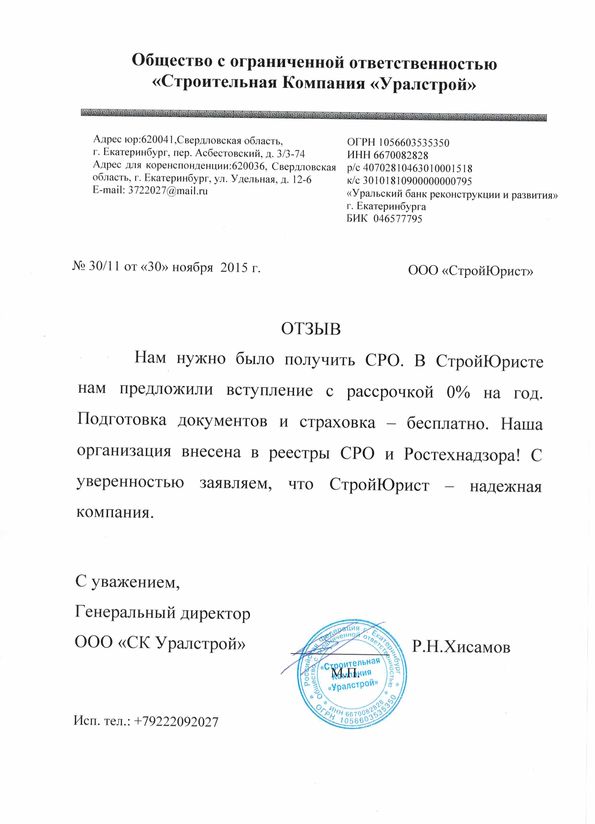 Отзывы клиентов "СтройЮрист" по вступлению в СРО в Одинцово
