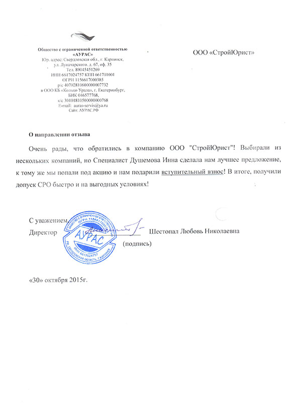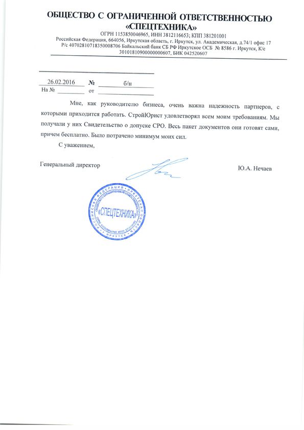 Отзывы клиентов "СтройЮрист" по вступлению в СРО в Одинцово