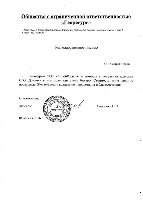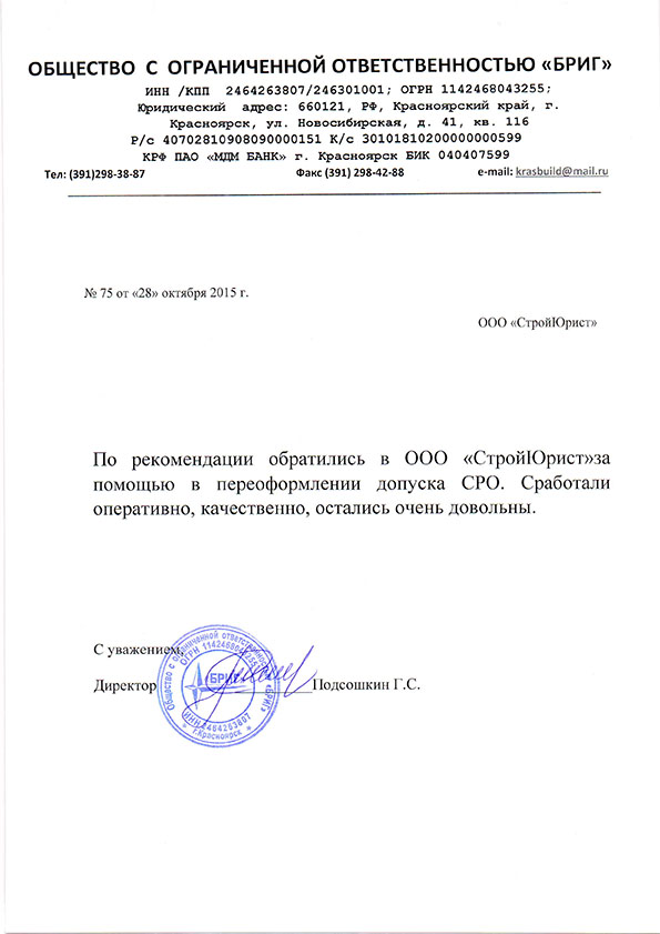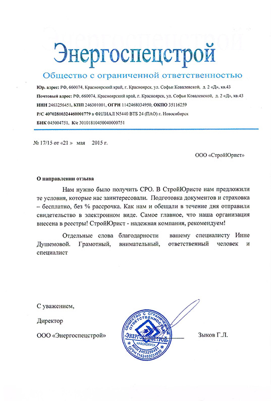 Отзывы клиентов "СтройЮрист" по вступлению в СРО в Одинцово