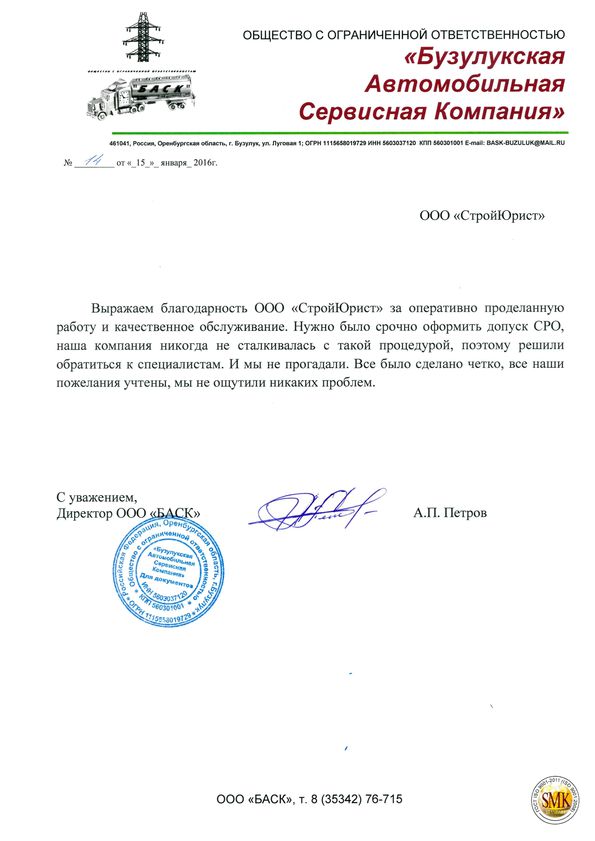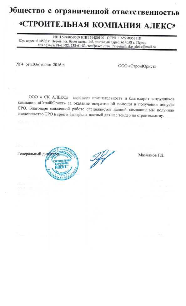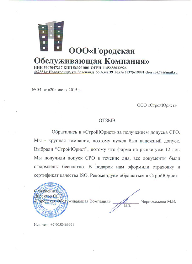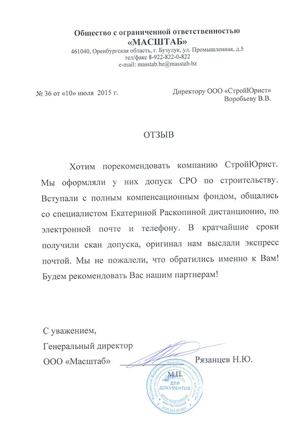 Отзывы клиентов "СтройЮрист" по вступлению в СРО в Одинцово