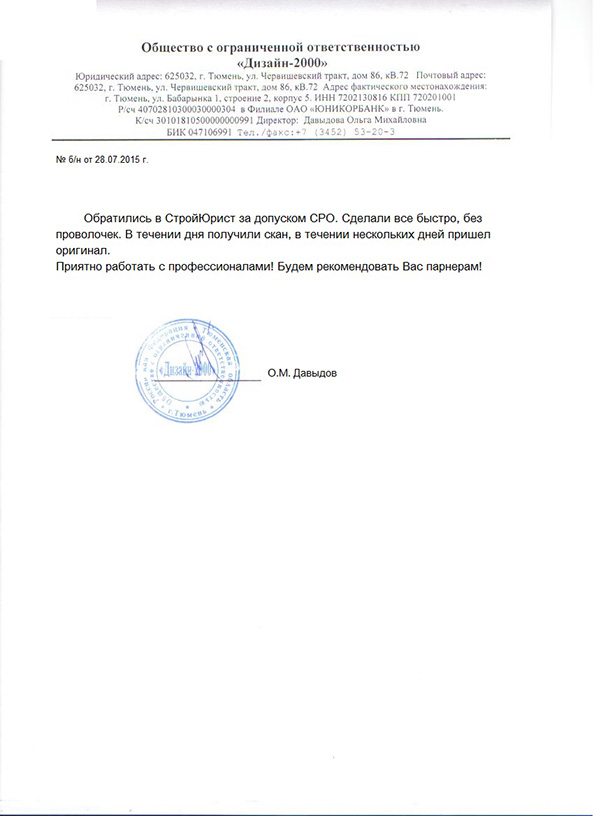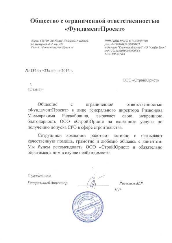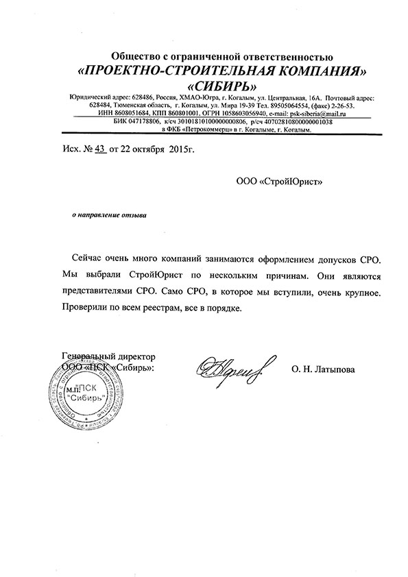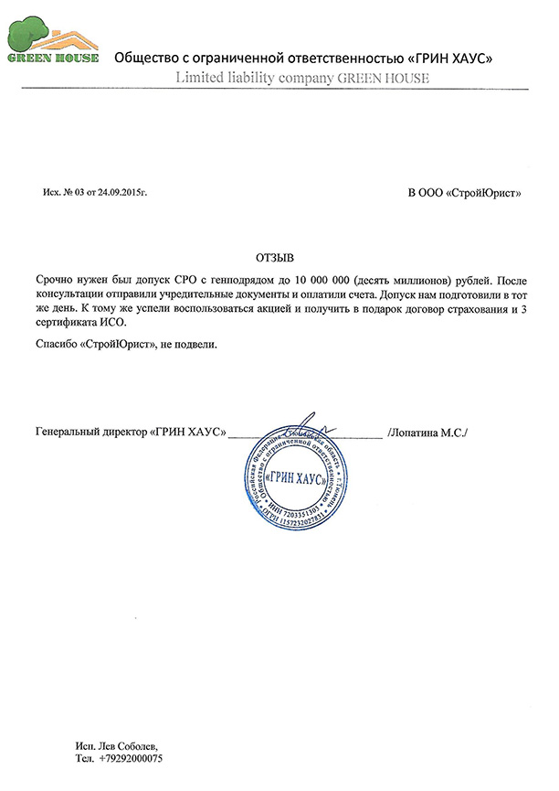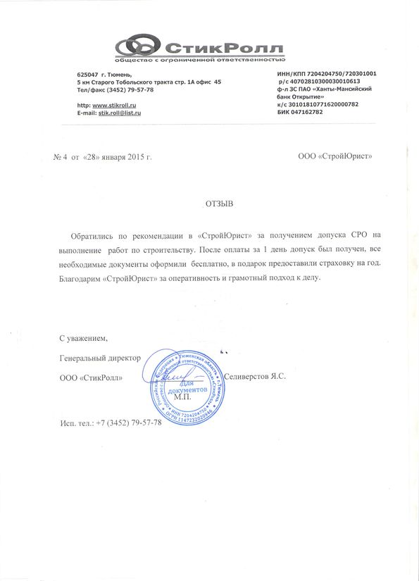 Отзывы клиентов "СтройЮрист" по вступлению в СРО в Одинцово