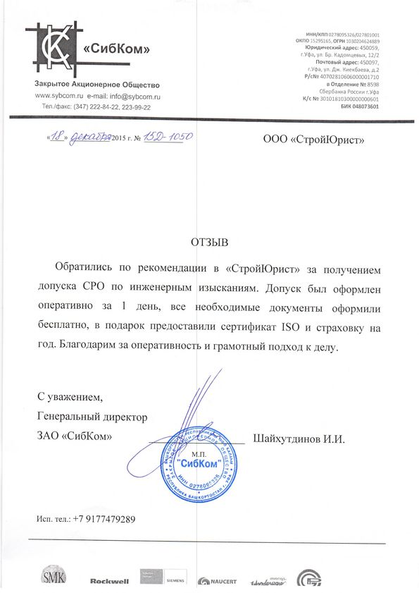 Отзывы клиентов "СтройЮрист" по вступлению в СРО в Одинцово
