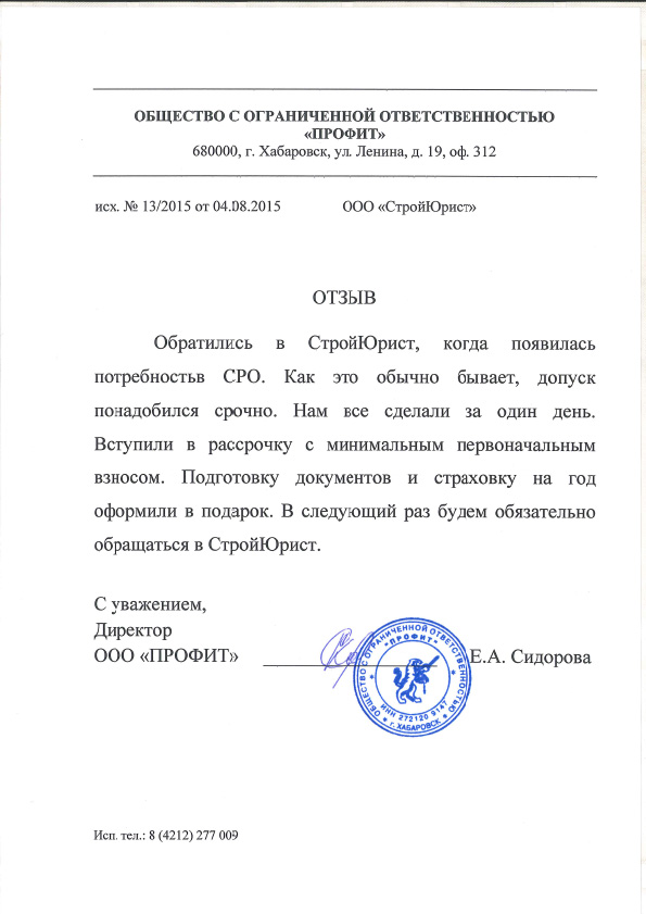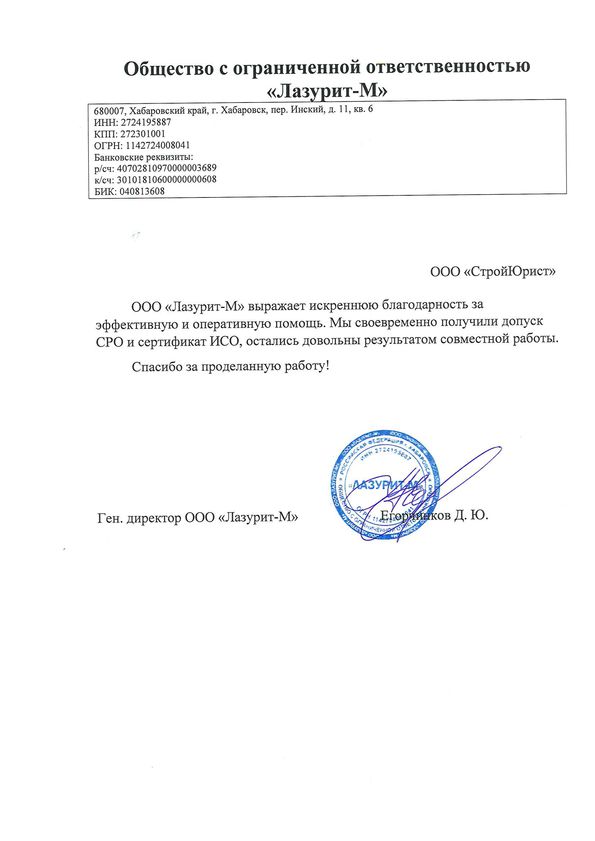Отзывы клиентов "СтройЮрист" по вступлению в СРО в Одинцово
