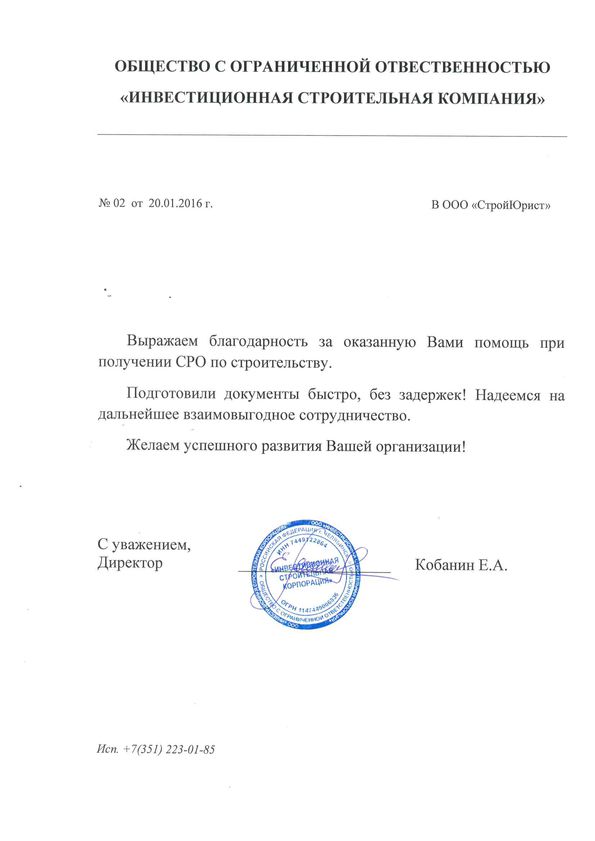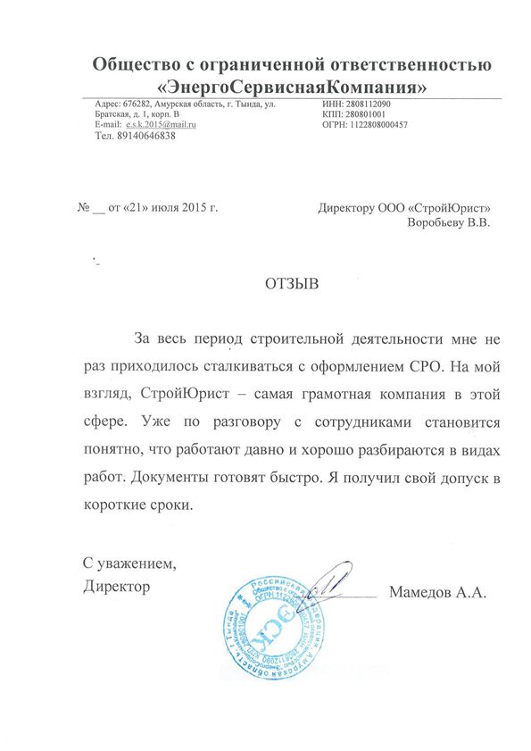 Отзывы клиентов "СтройЮрист" по вступлению в СРО в Одинцово