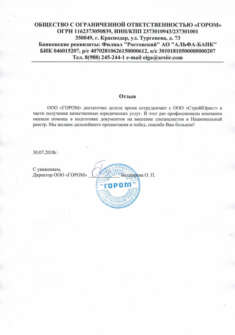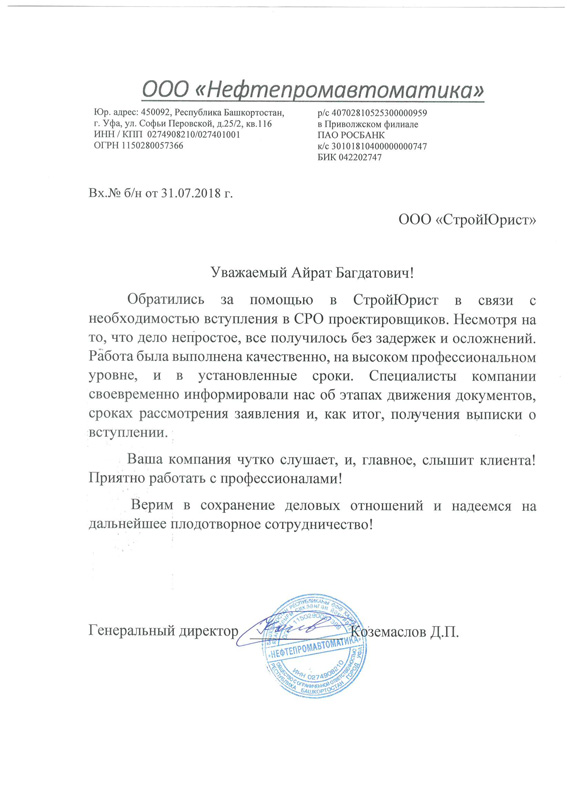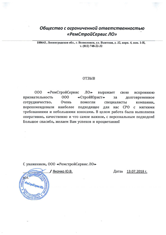 Отзывы клиентов "СтройЮрист" по вступлению в СРО в Одинцово
