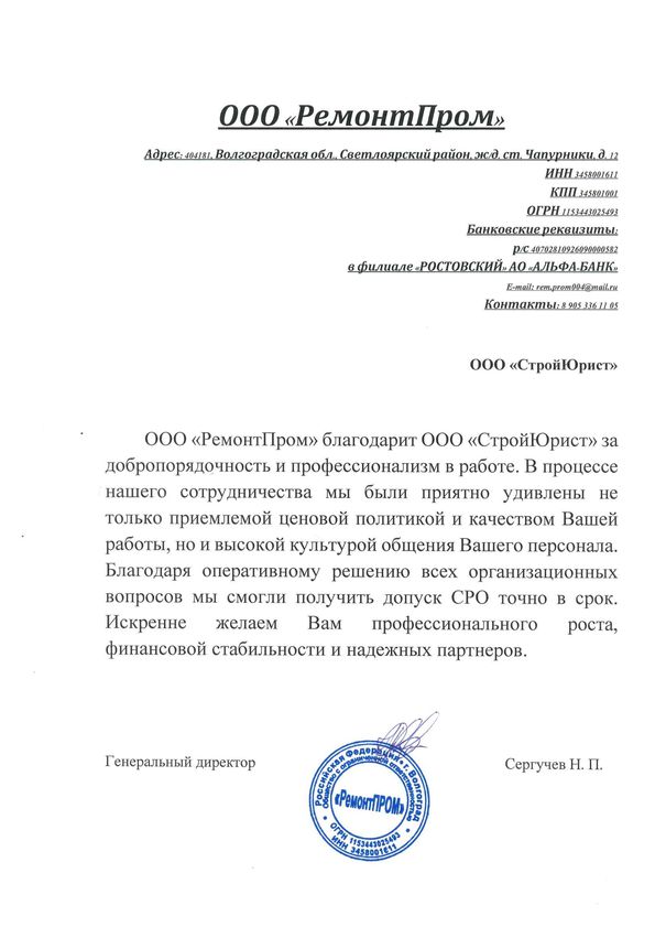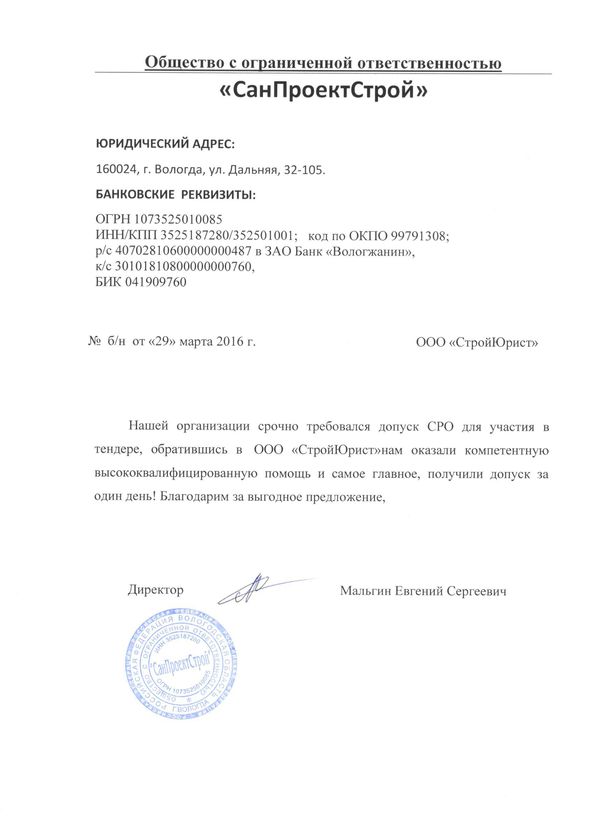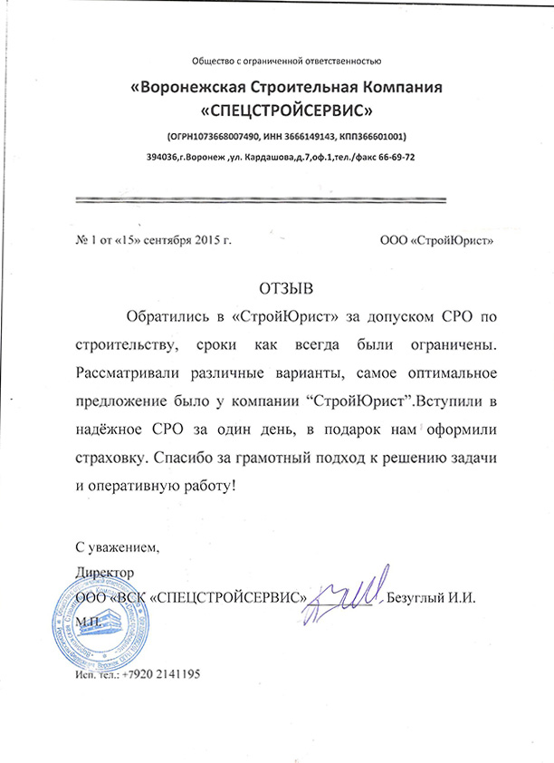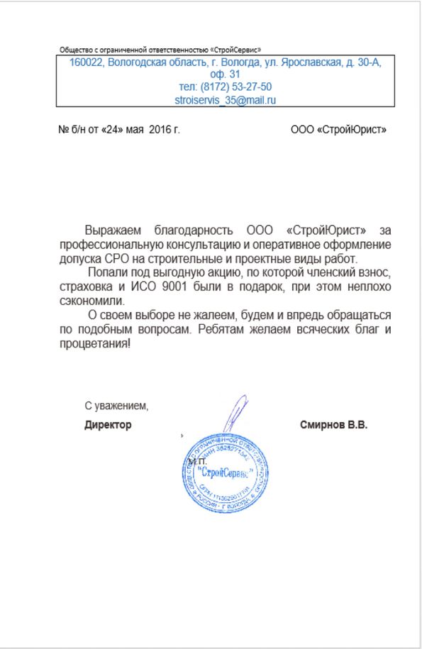 Отзывы клиентов "СтройЮрист" по вступлению в СРО в Одинцово